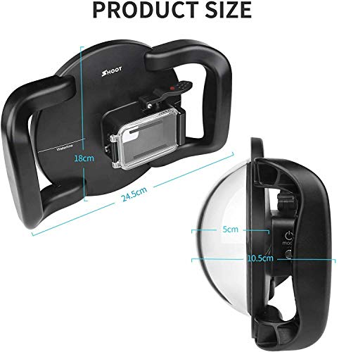 Design a doppia maniglia: il diving Dome ha un design di integrazione. Il guscio impermeabile, la cupola e il manico a doppio manico sono integrati in un design che impedisce la possibilità di perdite d’acqua. Il design a due maniglie permette di mantenere la stabilità durante la registrazione.