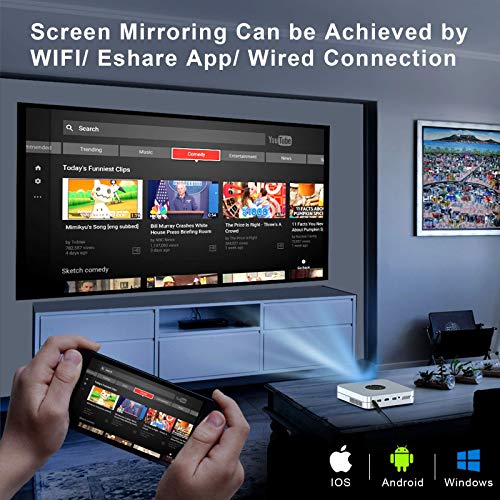 Yaufey 3D Mini Proiettore, 4000 Lumen Video proiettore, Con 6.0 sistema Android, Doppio Altoparlante Proiettore supporto…