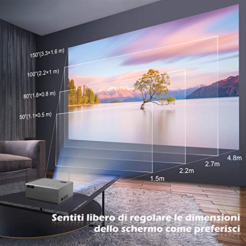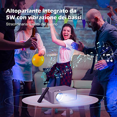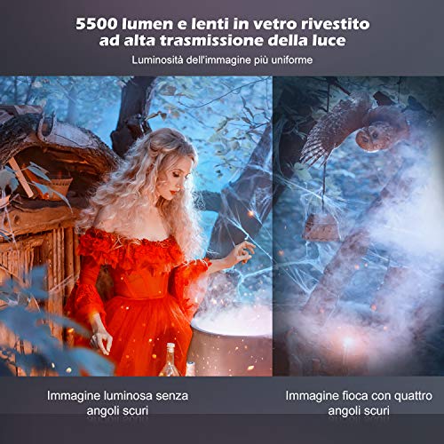YOHOOLYO Mini Proiettore Portatile, 5500 Lumen Videoproiettore, 1080P con 200 pollici Display, 50000 Ore Cinema…