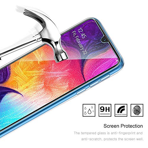 [pacchetto include]: Trasparente Silicone per Samsung Galaxy A50 Cover + 2 pcs Pellicola Protettiva in Vetro Temperato + 1 pcs Antiscivolo Mano Cinturino per Cellulare.