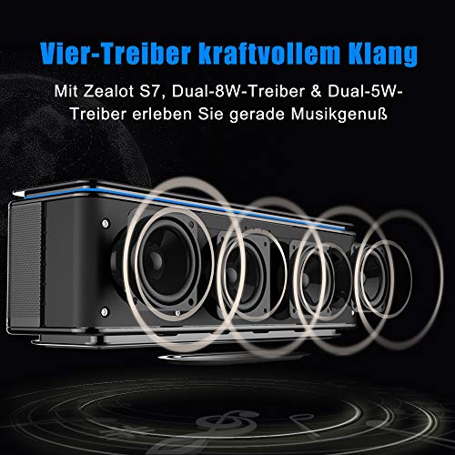 Zealot S7B cavo senza Bluetooth altoparlante con Dual Driver Attivatore suono Wireless Speaker con microfono incorporato…