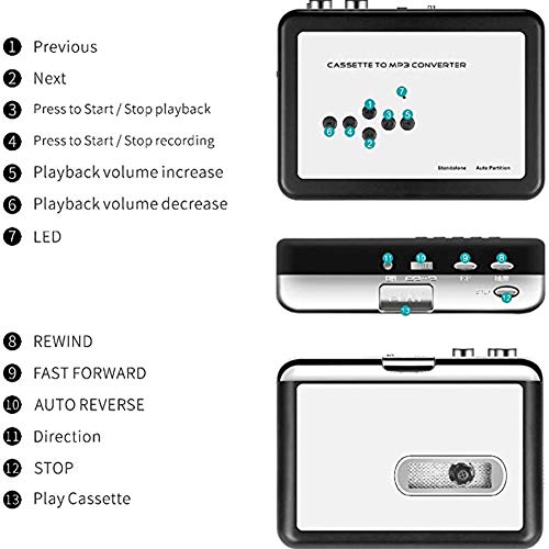 E con essa la funzione di conversione, è possibile convertire facilmente il nastro in file MP3 e salvare il nastro nel PC, o masterizzare su CD. E ha una porta USB OTG, è possibile convertire nastri adesivi direttamente in file MP3 e salvare sul disco U. Sbarazzarsi di PC. Facile funziona.