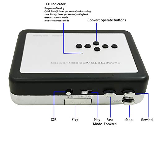 ❤ Cassette to MP3 Converter: Questa cattura cassetta può può trasferire direttamente le vostre vecchie cassette o nastri per il vostro USB Flash Drive (non inclusa) in formato MP3 ..